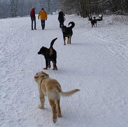 Dann wurde es endlich Frühling und es ging auf den Hundeplatz. Frauchen nennt das Erziehung. Ich muss neben ihr herlaufen und soll sie dabei immer ansehen. Naja, es gibt immer Leckerchen, da mache ich dann auch mal, was man von mir verlangt.
