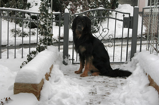 Wir haben dann auch zusammen mit einigen anderen Hovis eine Schneewanderung gemacht und ich war das erste Mal in einem Lokal. Frauchen sagt, ich habe mich ganz toll dort benommen.